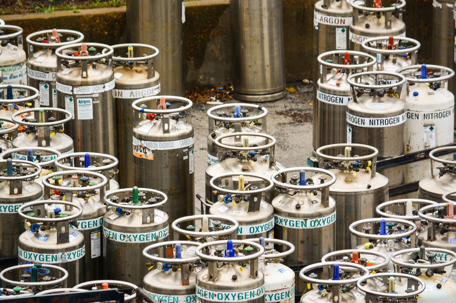 Next to the Grand Street MetroLink station is an Airgas stockpile of high-pressure gas cylinders. Because of the pressure, each cylinder has a tremendous amount of stored energy -- enough to make them a missile should they develop a sudden hole. These cylinders must be able to withstand considerable stress from the weather, however, if they are stored without cover in St. Louis. Perhaps they are empties?